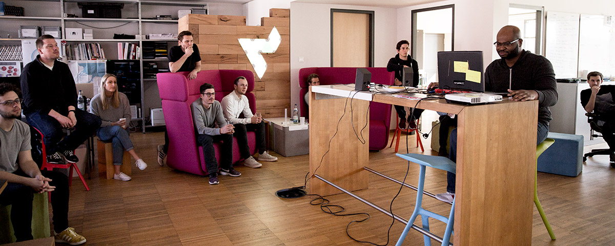 One important cultural institution fostering exchange between different teams at our Stuttgart office is what we call the Monday Meeting. It’s an informal meeting that gives teams and individuals the chance to present interesting projects as well as share insights and outcomes with each other. When we started having these meetings, we used one of our whiteboards to organize the agenda.