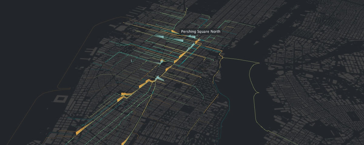 Till Nagel ist Forscher, doch wenn er fertig ist, möchte er sein Publikum einladen, an die Hand nehmen, eigene Erfahrungen machen lassen und mit dem generierten Wissen befähigen, eine Diskussion zu führen – vor allem wenn es um gesellschaftlich bedeutende Themen geht oder um den Umgang mit Daten an sich. Die Herausforderung, der er sich hier stellt, besteht darin, die Komplexität der Daten so zu zergliedern, dass sie den Betrachter einlädt, sich auf sie einzulassen. Von dort aus ist es möglich, sich immer tiefer in die Materie hinein zu denken und schließlich Erkenntnisse zu gewinnen. Till und seine Kollegen nennen ihre Methode Inszenierte Analyse: Das Ganze wird in seine Bestandteile aufgelöst und technisch und künstlerisch aufbereitet. Praktiziert wurde diese Methode bei cf. city flows: Betrachter können die Bikesharing-Dienste von London, New York und Berlin miteinander vergleichen, sehen, von wo die Menschen kommen und wo sie hin fahren. Die drei Städte sehen aus wie Adersysteme, organisch und verwachsen. Die Timeline geht auf 6 Uhr zu und an den äußeren Stellen leuchten die ersten Punkte auf. Die Städte erwachen und immer mehr leuchtende Punkte bewegen sich zu den Zentren, in denen die Businessviertel zu sein scheinen. Die Installation ist aufgeteilt in drei Ansichten, die hinsichtlich ihrer Komplexität abgestuft sind. So findet man leicht Zugang und kann sich gleichzeitig in vielschichtigen Graphen verlieren. cf. city flows ist vieles. Ein stadtplanerisches Informationsportal, die Illustration eines kulturellen Phänomens, ein digitales Kunstwerk.