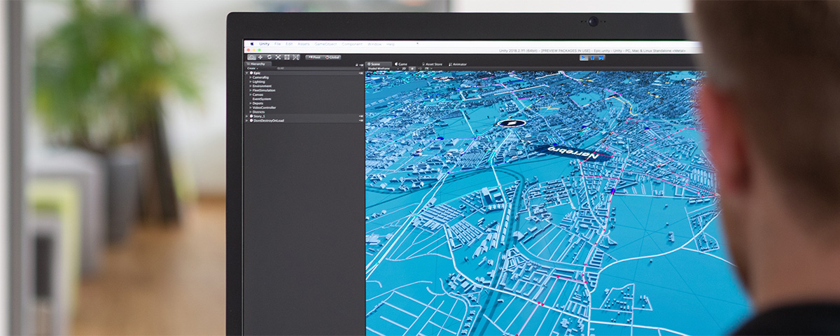 Gemeinsam mit Mercedes-Benz Vans entwickelte Intuity ein virtuelles Modell der Stadt Kopenhagen, um das Zusammenspiel zwischen Fahrgast, Mobilitätsanbieter und städtischer Infrastruktur greifbar zu machen. Im virtuellen Kopenhagen werden einzelne Aspekte des Flottenökosystems durch konkrete Geschichten erzählt. Auf diese Weise lassen sich die Möglichkeiten der zukünftigen Mobilitätslösung visuell erleben.